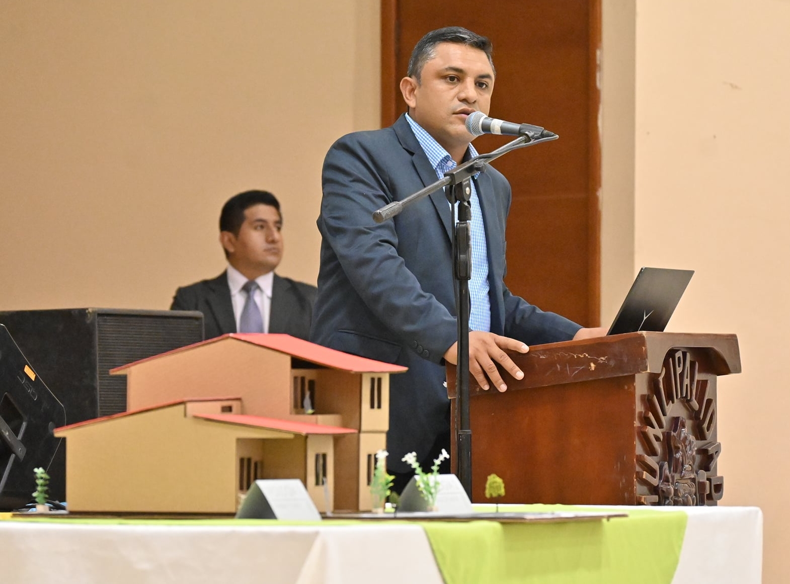 El acto se desarrolló en el salón auditorio municipal, luego de las 18h00, tomando en cuenta todas las medidas de bioseguridad, y con aforo muy reducido.