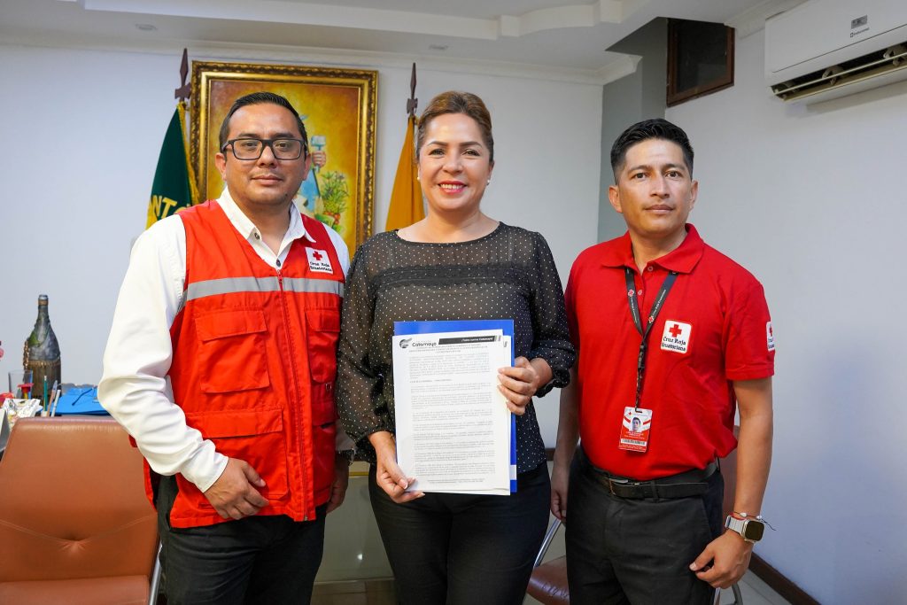 Comprometida con el desarrollo y fortalecimiento institucional de Catamayo, la alcaldesa Janet Guerrero entregó en comodato por 5 años una oficina que estará ubicada en la calle 12 de Octubre, entre Juan Montalvo y Olmedo para el funcionamiento de la Junta Cantonal de la Cruz Roja Ecuatoriana.