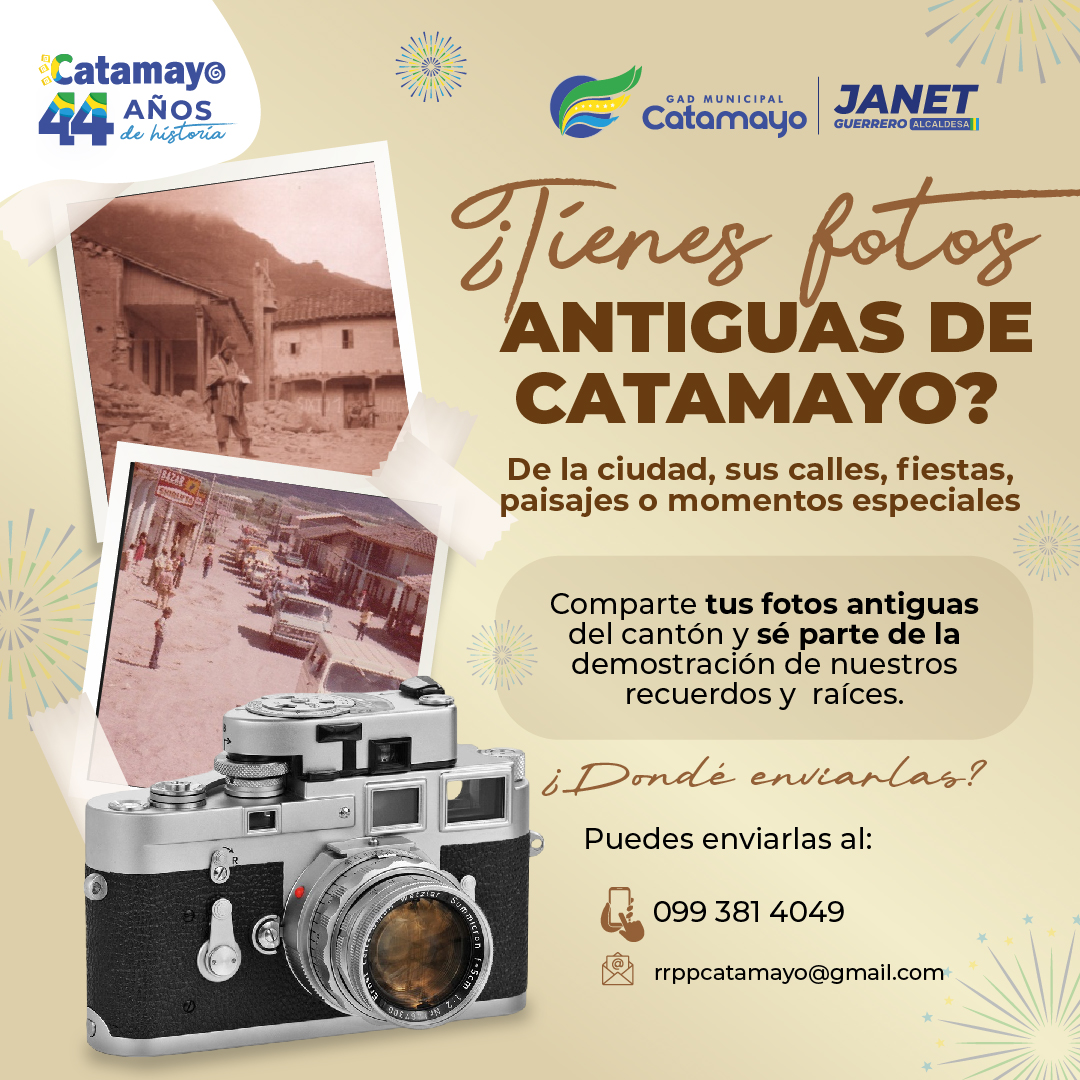 ¿Tienes fotografías antiguas de nuestro querido Catamayo? ¡Queremos verlas! Te invitamos a ser parte de esta iniciativa para rescatar y preservar la memoria histórica de uno de los cantones más prósperos de la provincia de Loja. Puedes enviarlas al correo electrónico adjunto (rrppcatamayo@gmail.com) o déjanos tu contacto y nos comunicaremos contigo. ¡Juntos contemos la historia […]