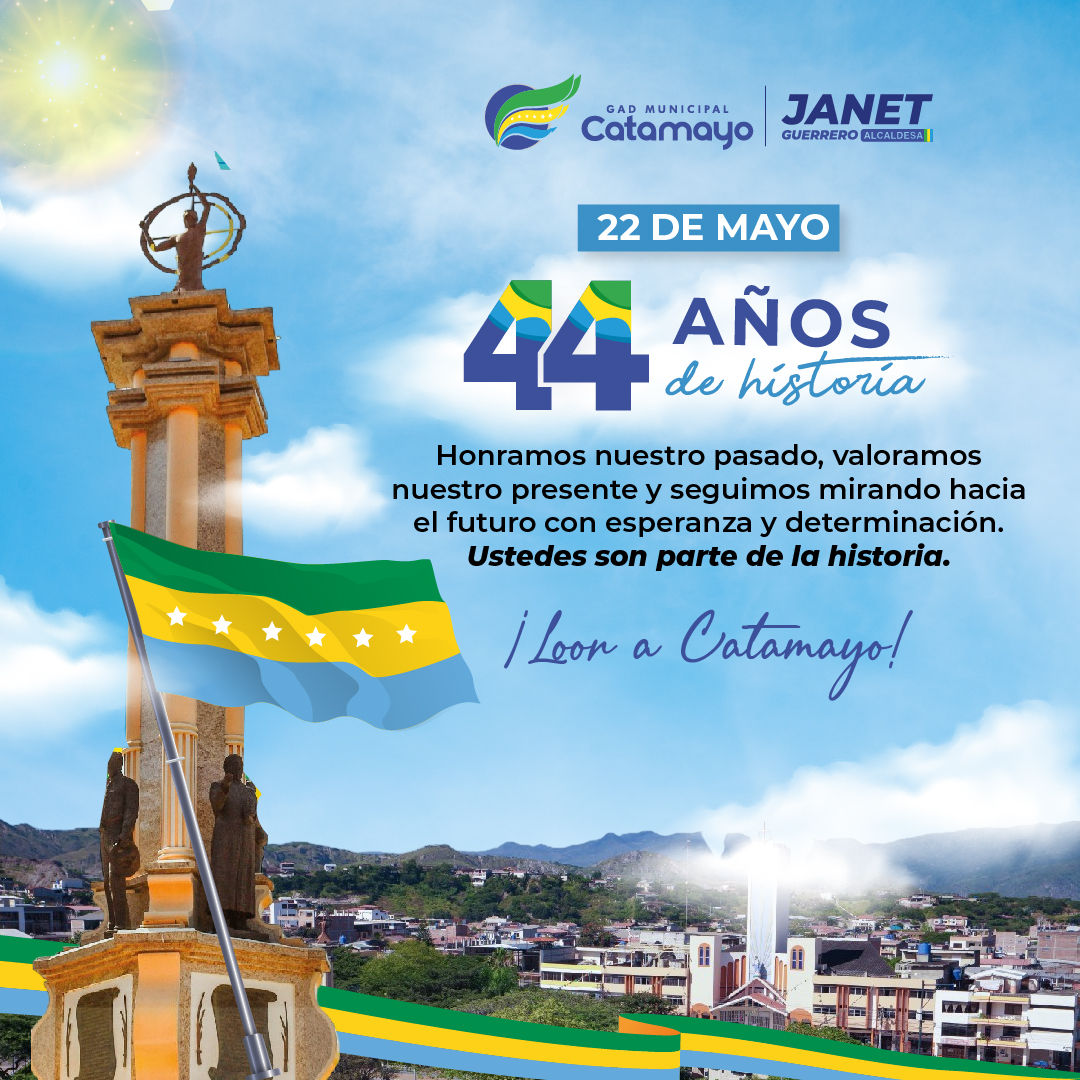 Hoy conmemoramos con orgullo 44 años de cantonización en donde honramos nuestro pasado, valoramos nuestro presente y seguimos mirando hacia el futuro con esperanza y determinación. ¡44 años de historia y orgullo catamayense!