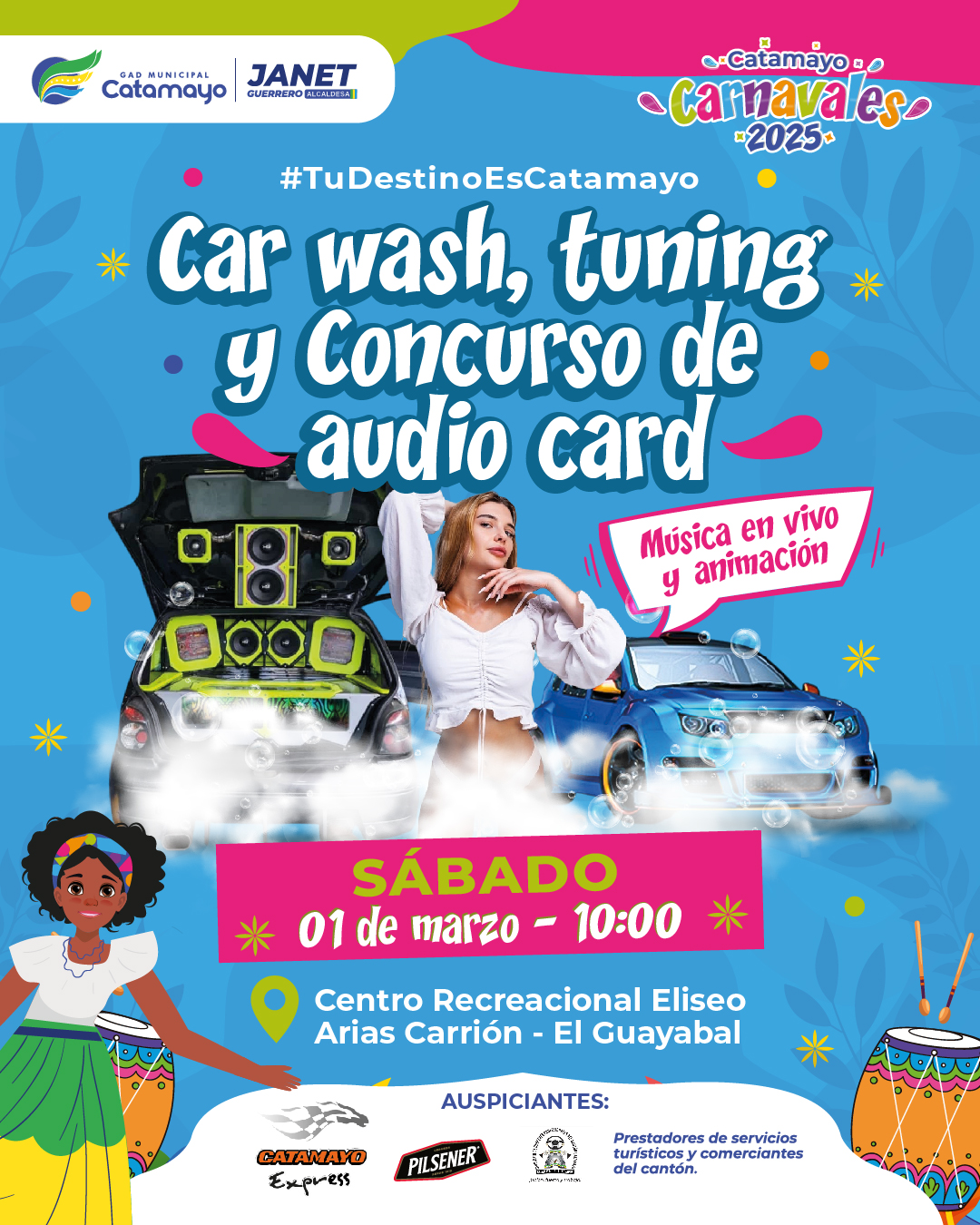 Catamayo, Ciudad del Eterno Sol, te invita a disfrutar de una fiesta inolvidable con Colombia, Perú y Ecuador en los mejores carnavales del sur del país. Lunes 3 de marzo Gerardo Moran (Ecuador) Orquesta Caramelo (Colombia) Parque Central – 14h00 Música, baile y diversión te esperan