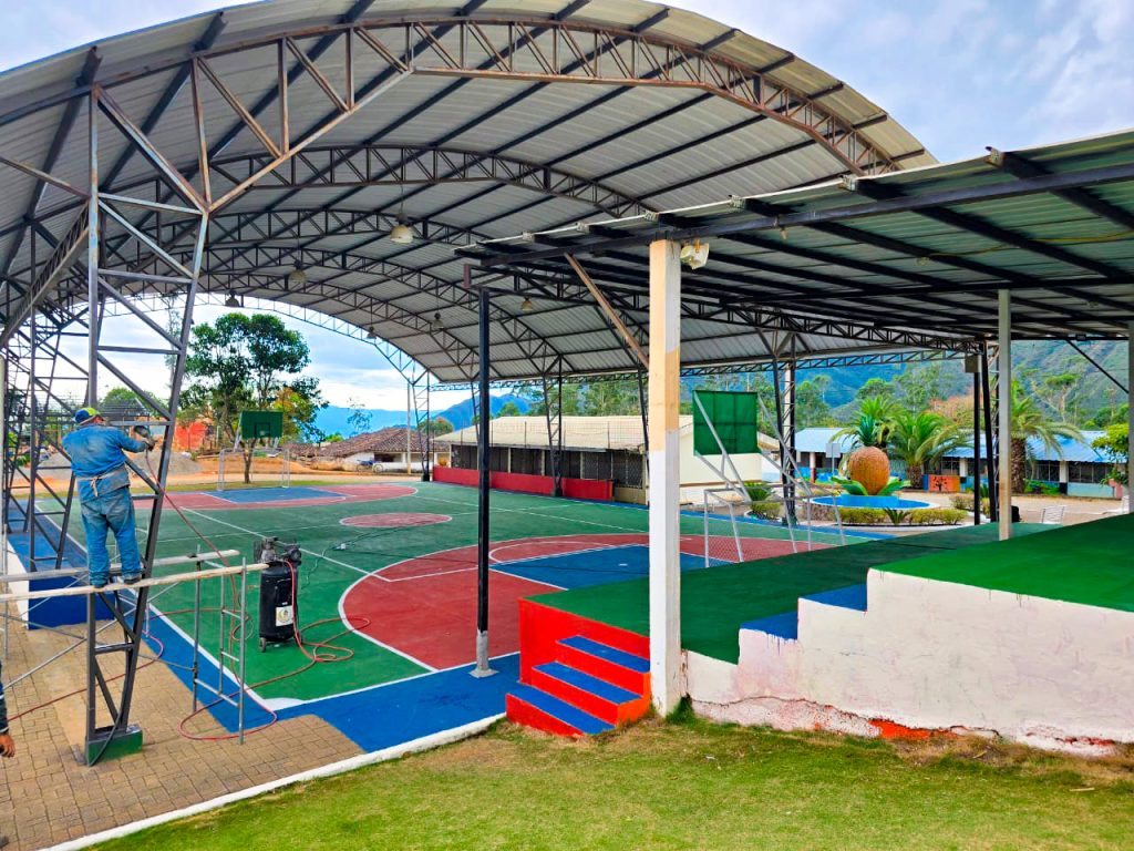 El ingeniero José Cango, director del Departamento de Obras Públicas, informó que las labores se centran en el mejoramiento integral de la infraestructura metálica de la cancha de uso múltiple, el pintado y mantenimiento de las barandas del parque central y la adecuación de la fachada del templo parroquial, acciones que buscan rescatar y realzar los espacios de convivencia comunitaria y espiritual de esta importante parroquia catamayense.
