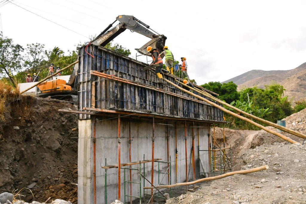 Se ha culminado la construcción de la primera base de hormigón armado del puente de 22 metros de longitud, una obra emblemática que avanza con firmeza.