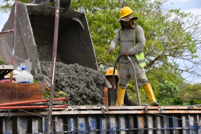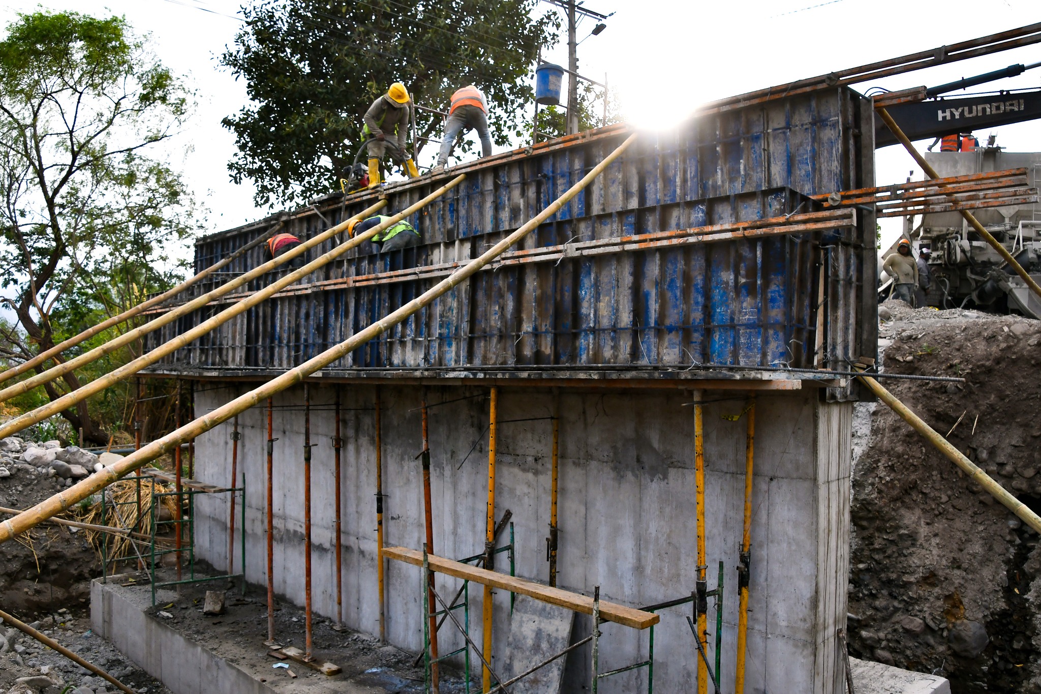 Se ha culminado la construcción de la primera base de hormigón armado del puente de 22 metros de longitud, una obra emblemática que avanza con firmeza.